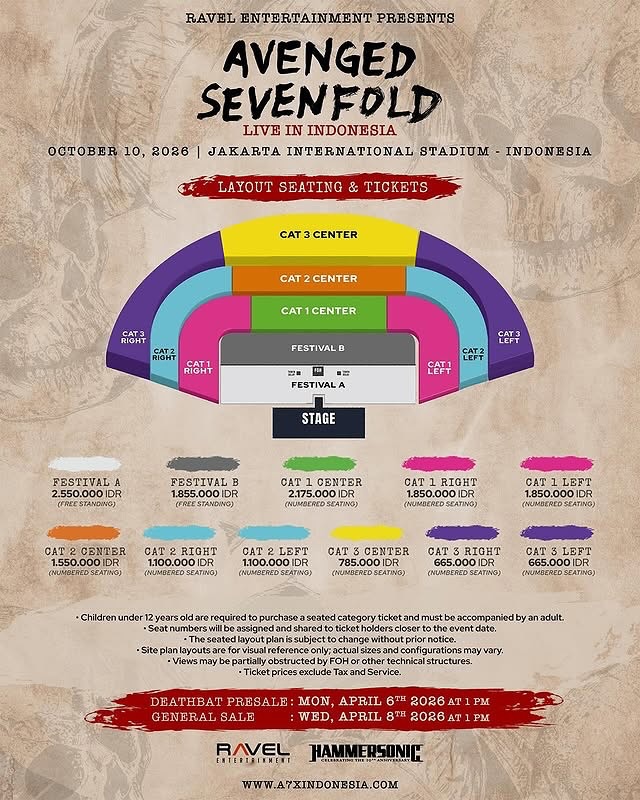 Kembalinya Avenged Sevenfold ke Jakarta diprediksi kembali menjadi salah satu konser terbesar di Indonesia. Dengan rekam jejak konser yang selalu sold out dan fanbase yang kuat, war tiket dipastikan akan berlangsung ketat.